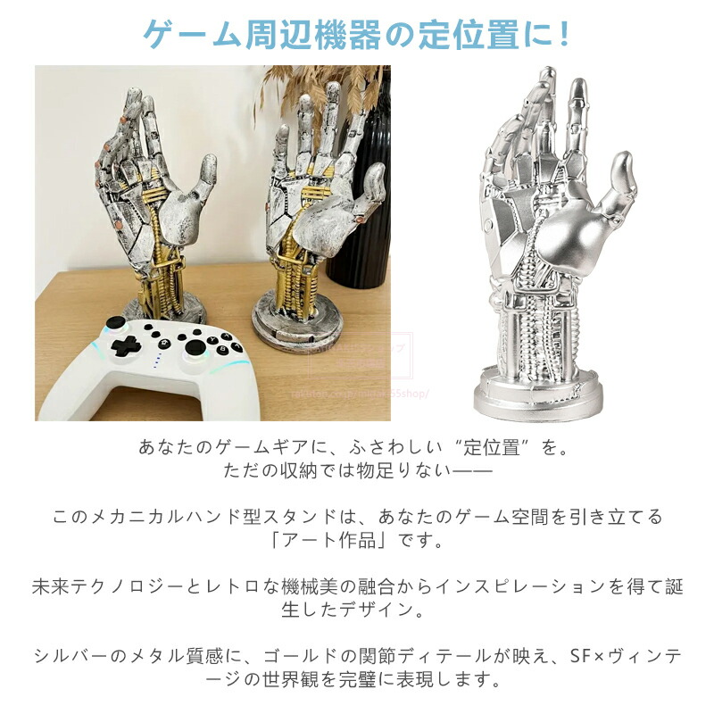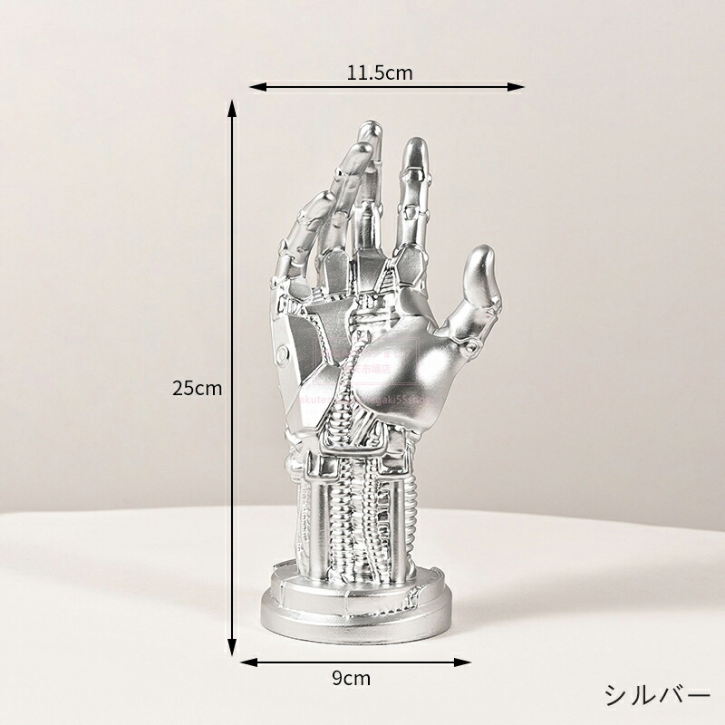 サイバーパンク風ロボットアーム 置物 シルバー ブラック レトロカラー