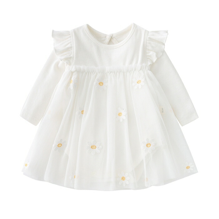 ベビードレス ワンピース 長袖 ロンパース 女の子 チュール スカート ドレス 幼児 赤ちゃん 入園式 新生児 子供服 保育園 キッズ用 メッシュ 切り替え 可愛い 人気 誕生日 出産祝い プレゼント