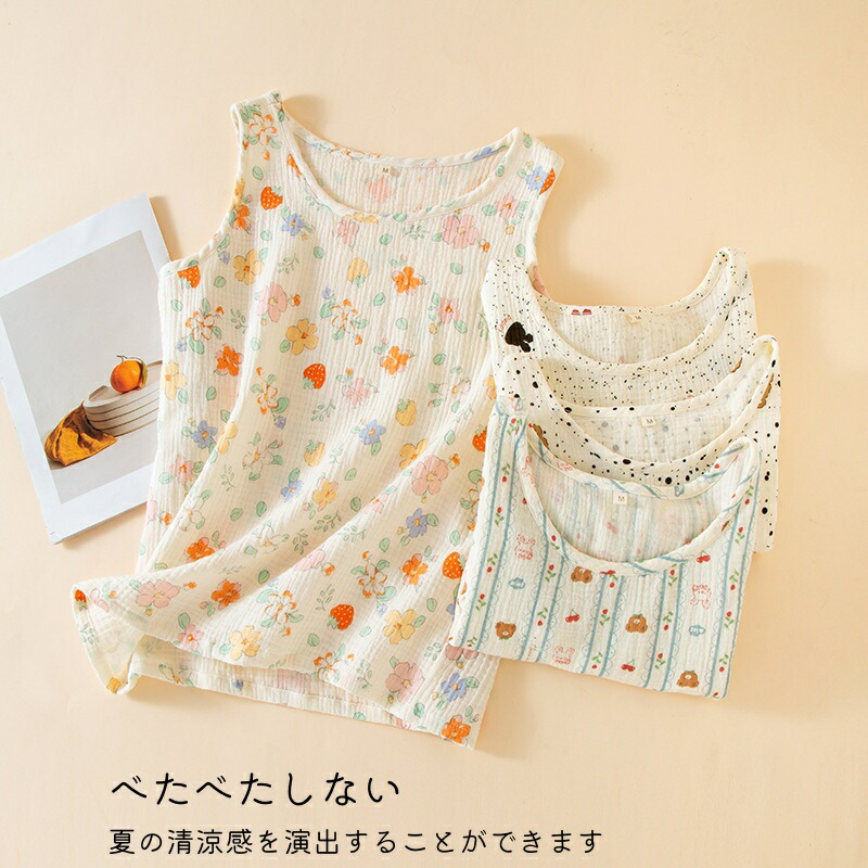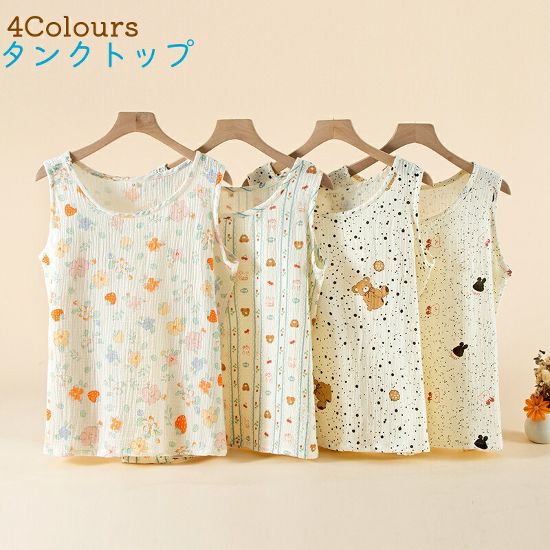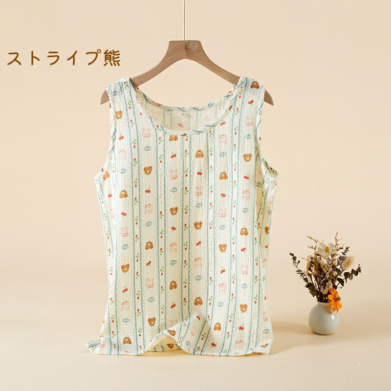タンクトップ レディース 綿100% トップス タンクトップ 豊富な品揃え ドット熊 いちご ウサギ ストライプ熊 M L XL