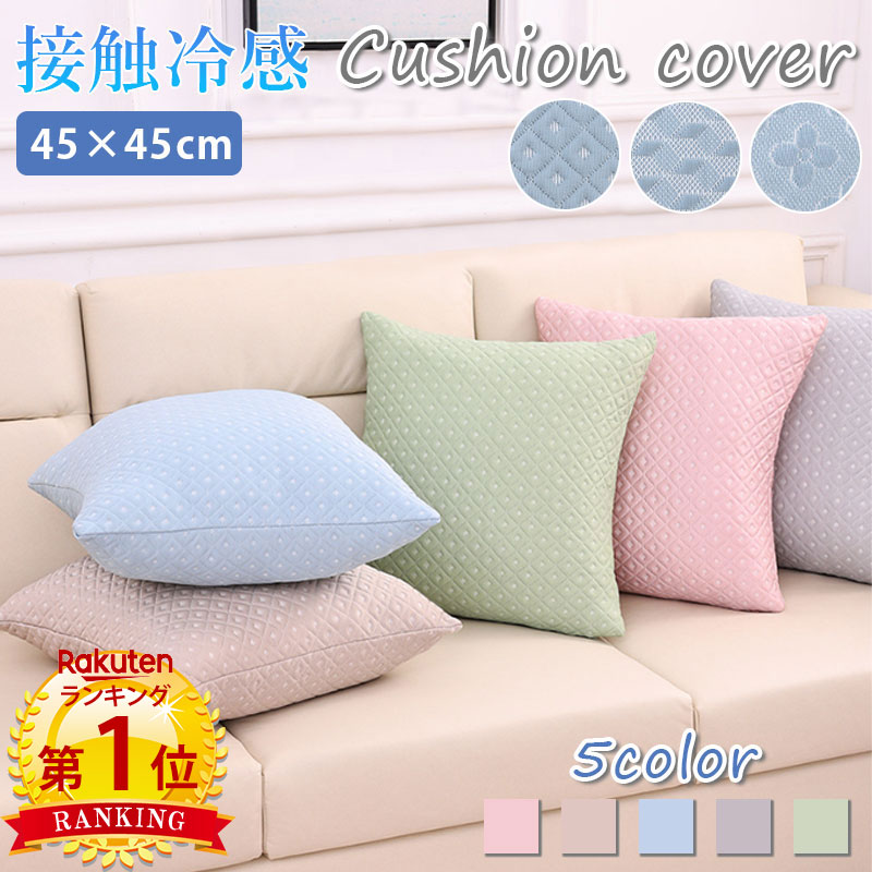 冷感 クッションカバー 45×45cm A-ダイヤ B-ウェーブ C-フラワー ピンク シャンパン グレー ブルー グリーン