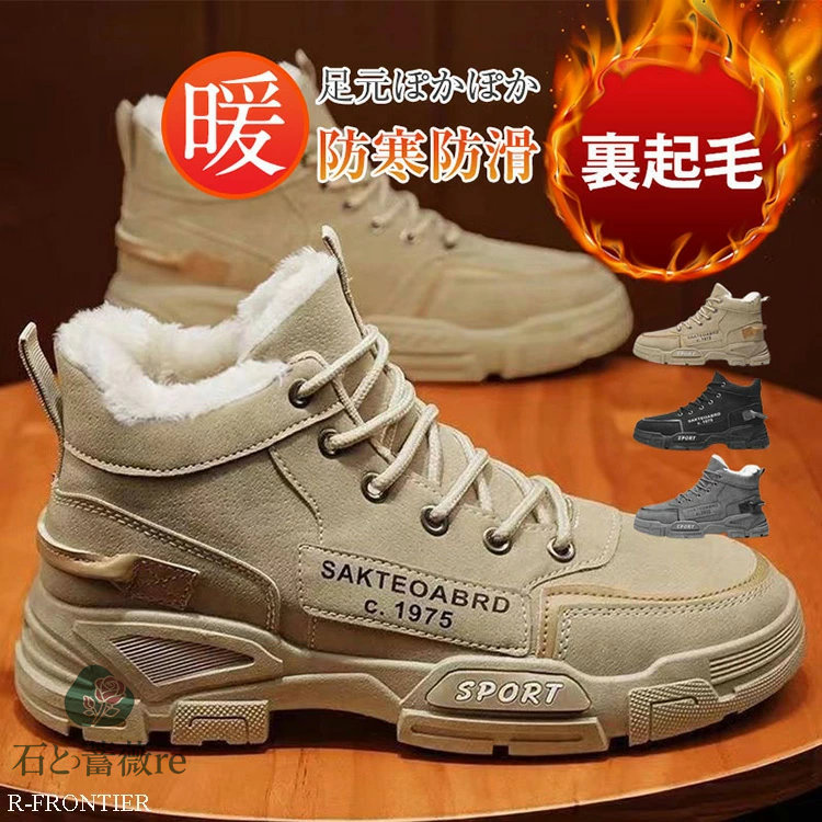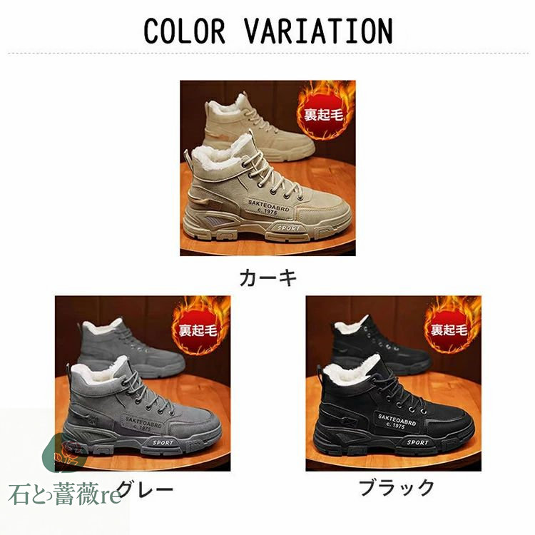 スノーブーツ メンズ 滑らない 裏起毛 靴 続々入荷中 カーキ グレー ブラック 内長24.5cm (39) 内長25cm (40) 内長25.5cm (41) 内長26cm (42) 内長26.5cm (43) 内長27cm (44)