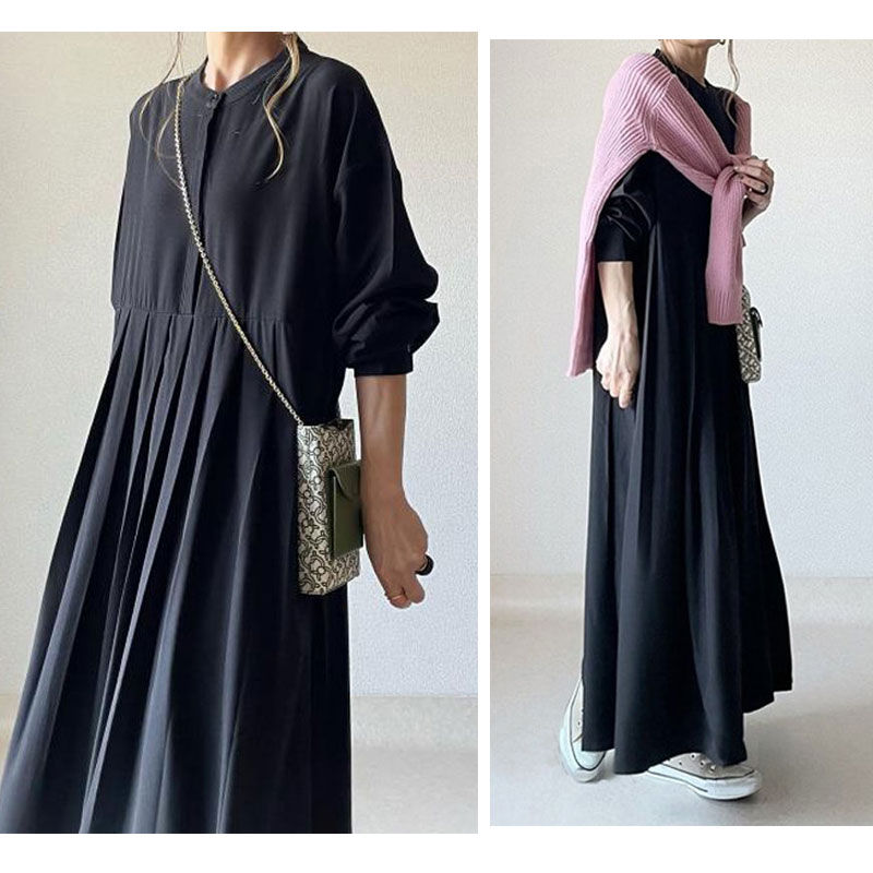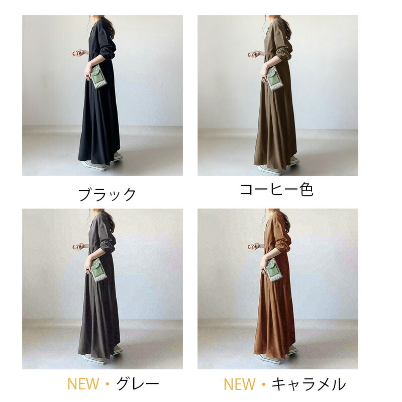 シャツワンピース 長袖 ワンピース レ ブラック 新色/コーヒー色 NEW・グレー NEW・キャラメル S M L