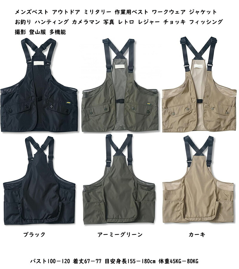 メンズベスト アウトドア ミリタリー 作業用ベスト ワークウェア ジャケット 大きいサイズ ポケット お釣り ハンティング カメラマン 写真 レトロ レジャー チョッキ 撮影 登山服 多 フィッシング