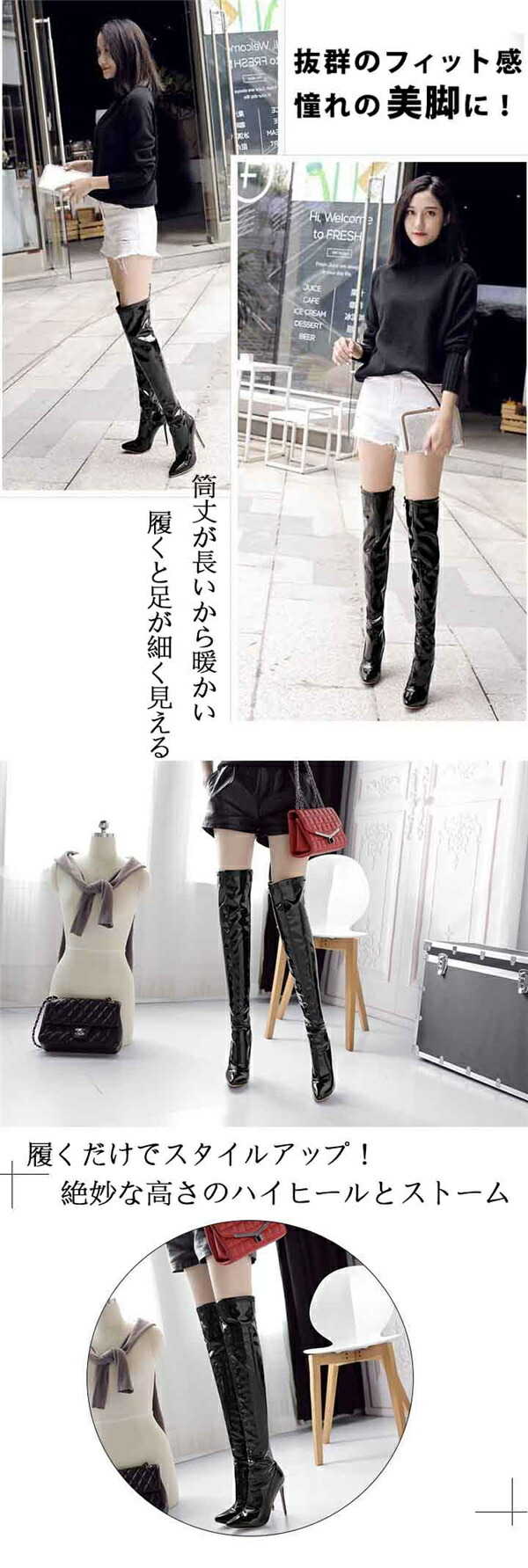 ロングブーツ ニーハイブーツ ヒール12cm