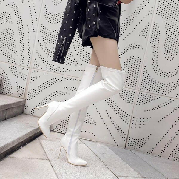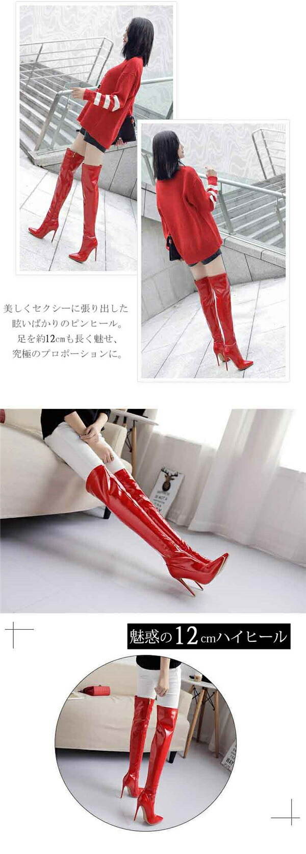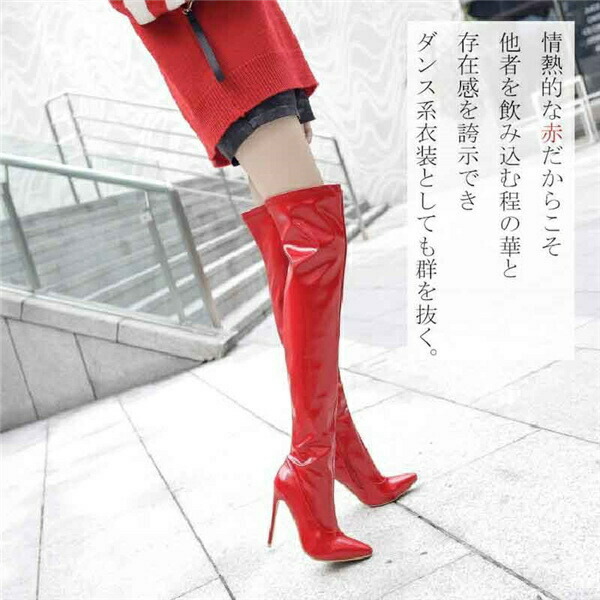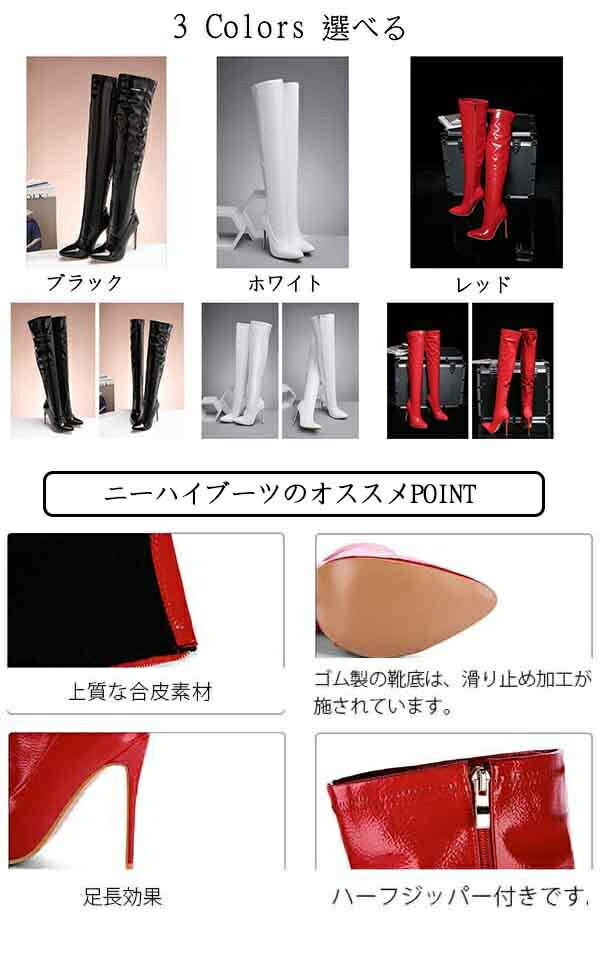 ロングブーツ ニーハイブーツ ピンヒール ブーツ 美脚 カジュアル レディース ファッション シューズ 靴 秋 冬 春 20代 30代 40代 レッド ブラック 大きいサイズ 小さいサイズ ホワイト