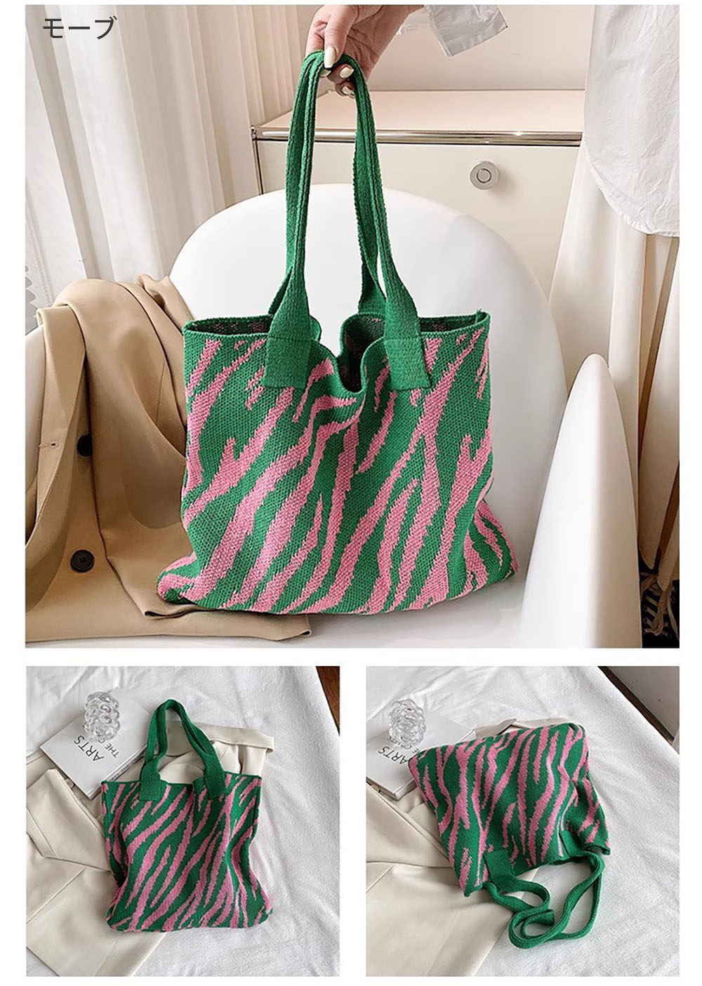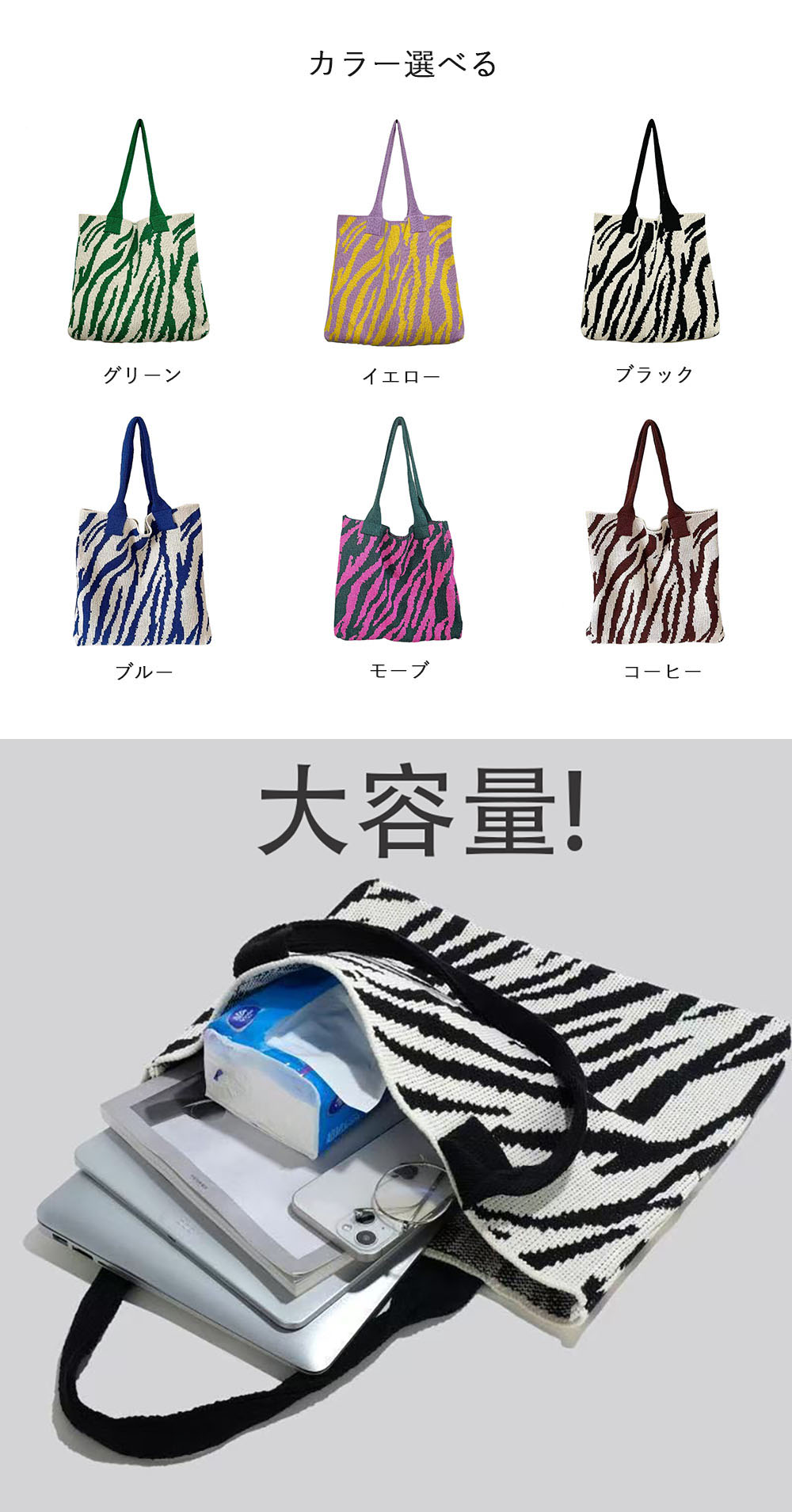 ニットバッグ トートバッグ 大容量かば バッグ 男女兼用バッグ トートバッグ 豊富な品揃え グリーン イエロー モーブ ブルー コーヒー ブラック