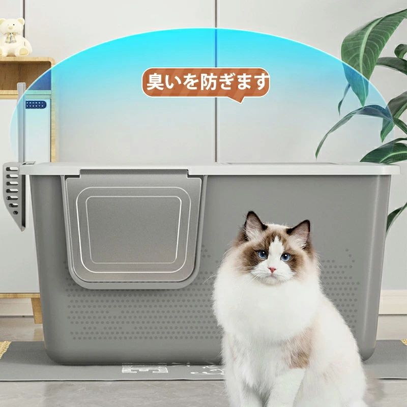 2WAY ツードア猫トイレ 猫トイレ フルカバー 大きめ 大型 スコップ付き ネコ トイレ お手入れ 脱臭 砂の飛び散り防止 上と 掃除