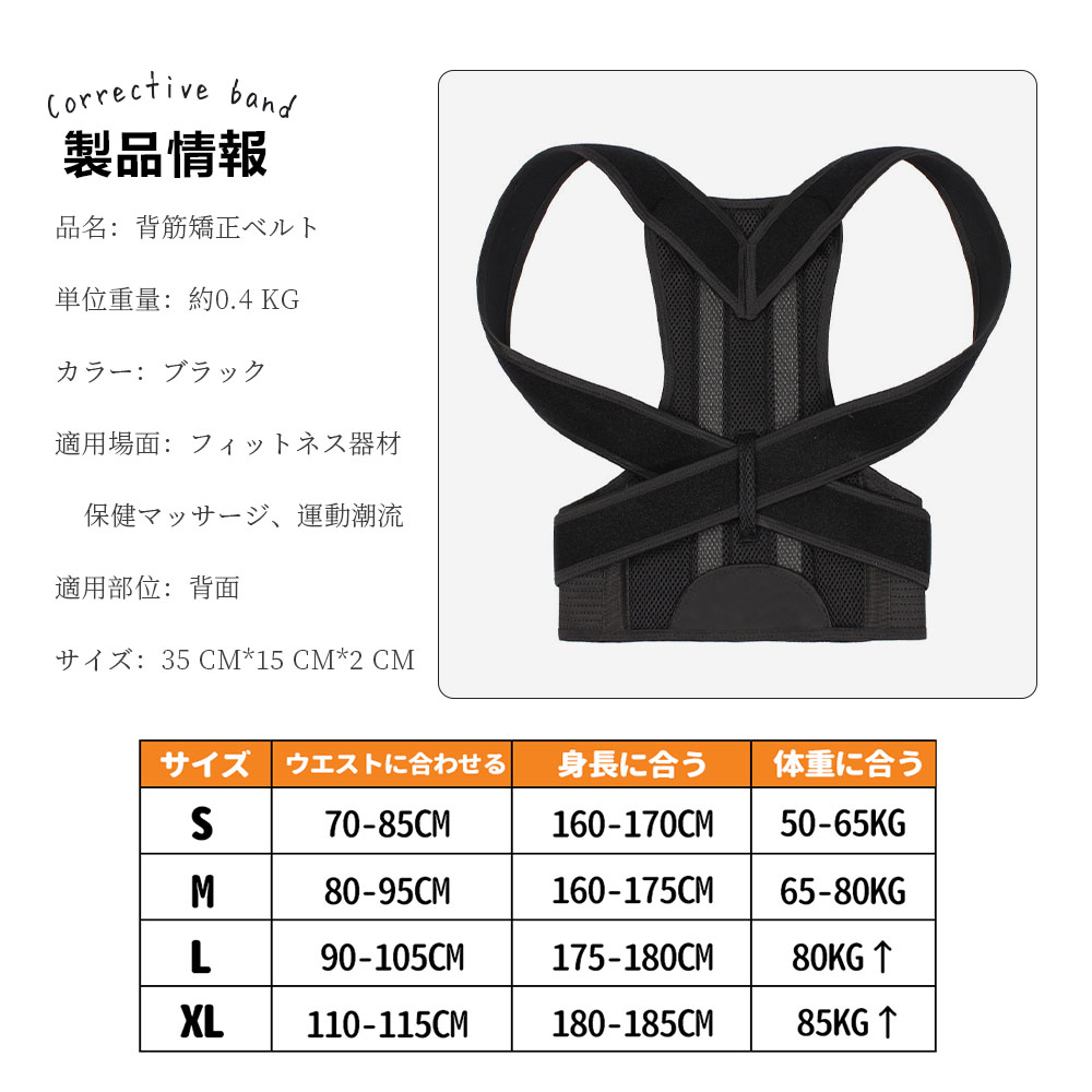 背筋矯正ベルト 猫背矯正ベルト 猫背 S M L XL