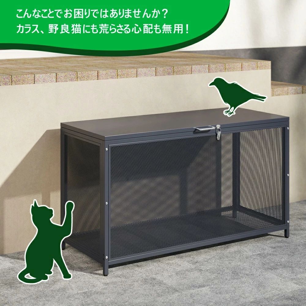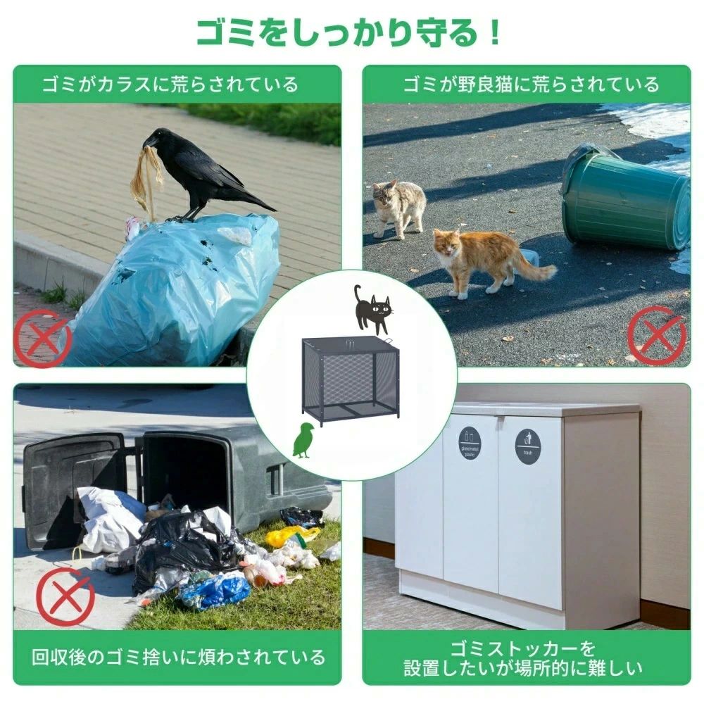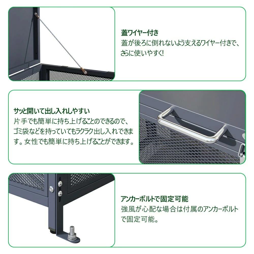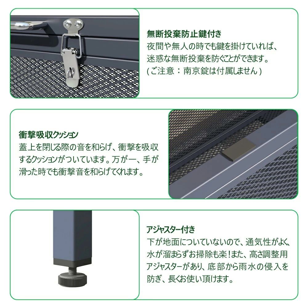 屋外ゴミ収納庫 ゴミ箱 屋外 メッシュ 通気性抜群 鍵付き ゴミ収集ボックス ごみ集積所 大容量 カラスよけ 野良猫対策 庭用可能 耐久性 アジャスター付き ゴミ荒らし防止