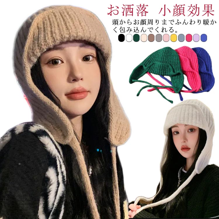 耳あて付き 帽子 フード ニット帽 レ 帽子 レディース帽子 ニット帽 人気 ブラック ホワイト グリーン カーキ コーヒー グレー ピンク イエロー グレーブルー ローズレッド パープル ブルー