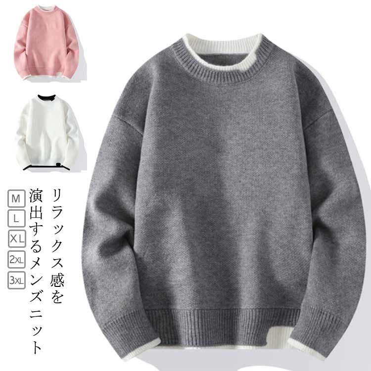 ニット メンズ ニットセーター ニット トップス ニット セーター 豊富 グレー ピンク ホワイト M L XL 2XL 3XL