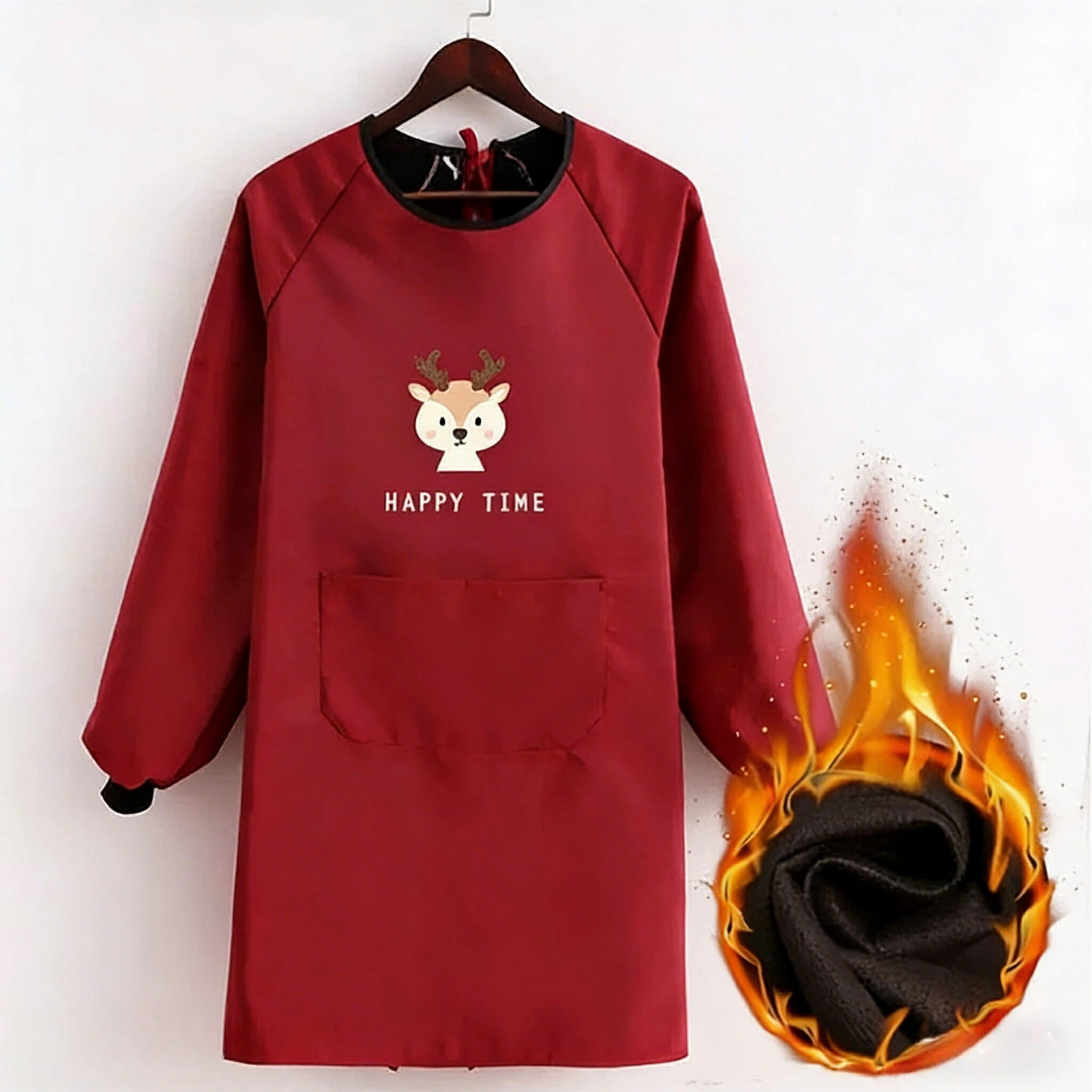 防寒 裏起毛 エプロン チュニック ロ キッチン用品 食器 調理器具 49%Off ブラック ベージュ レッド ピンク ブラック(手拭きタオル付き) ベージュ(手拭きタオル付き) レッド(手拭きタオル付き) ピンク(手拭きタオル付き)
