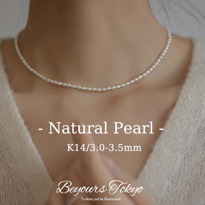 アクセサリー シンプル 37cm 淡水 ネックレス 14金 k14 パールネックレス 14k 40cm 上品 ライス レディース パール 小粒 3-3.5mm