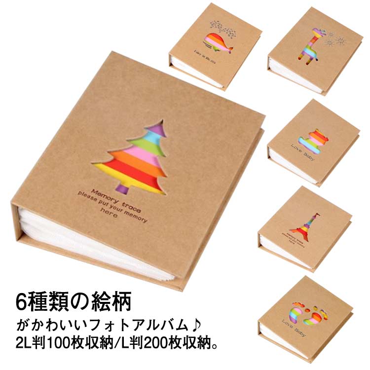 フォトアルバム 写真 ベージュ 2L判 文房具 事務用品 写真整理用品 アルバム 早い者勝ち!ポイントUP ツリー キリン クマ タワー 足あと クジラ Lサイズ 2Lサイズ