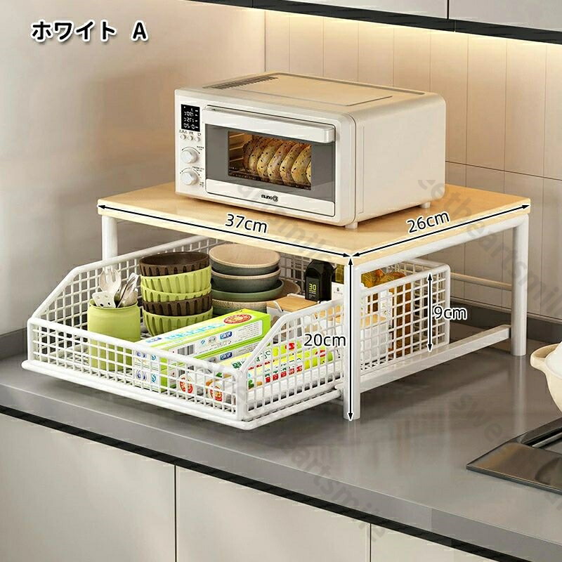 レンジラック 卓上 引き出し付き 電子 キッチン整理用品 調理小道具立て 早い者勝ち!ポイントUP ホワイト ブラック A タイプ B タイプ