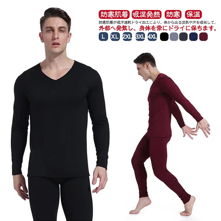 ヒートテック 防寒着 メンズ vネック インナー 下着 ナイトウエア 早い者勝ち!ポイントUP ブラック ライトグレー ダークグレー ネイビー ワインレッド L XL 2XL 3XL 4XL