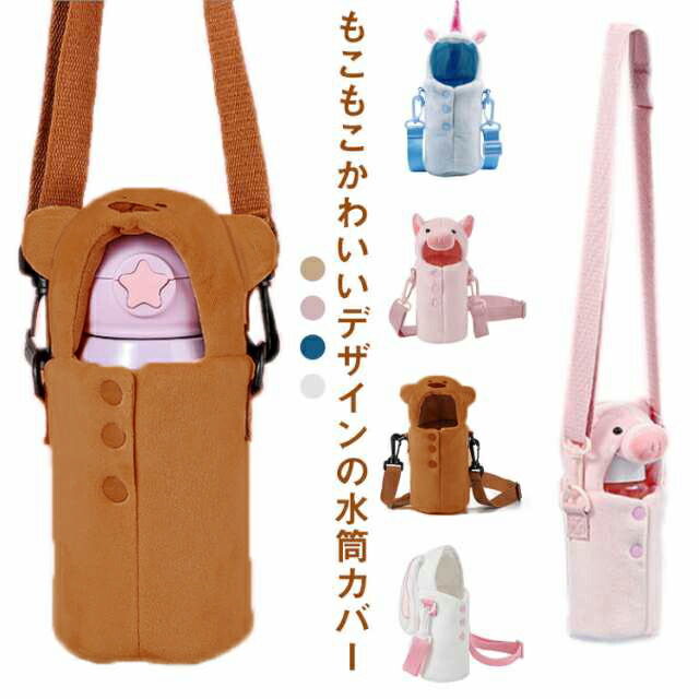 可愛い 癒し 豚 もこもこ 水筒カバー キッチン用品 食器 調理器具 通販 ライトブラウン熊 白ウサギ ブルーユニコーン ピンク豚 S L