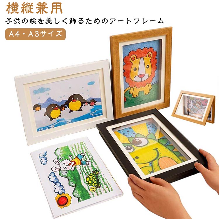 保管 ポスターフレーム 子供の絵を飾る ブラック ホワイト ナチュラル A4 A3