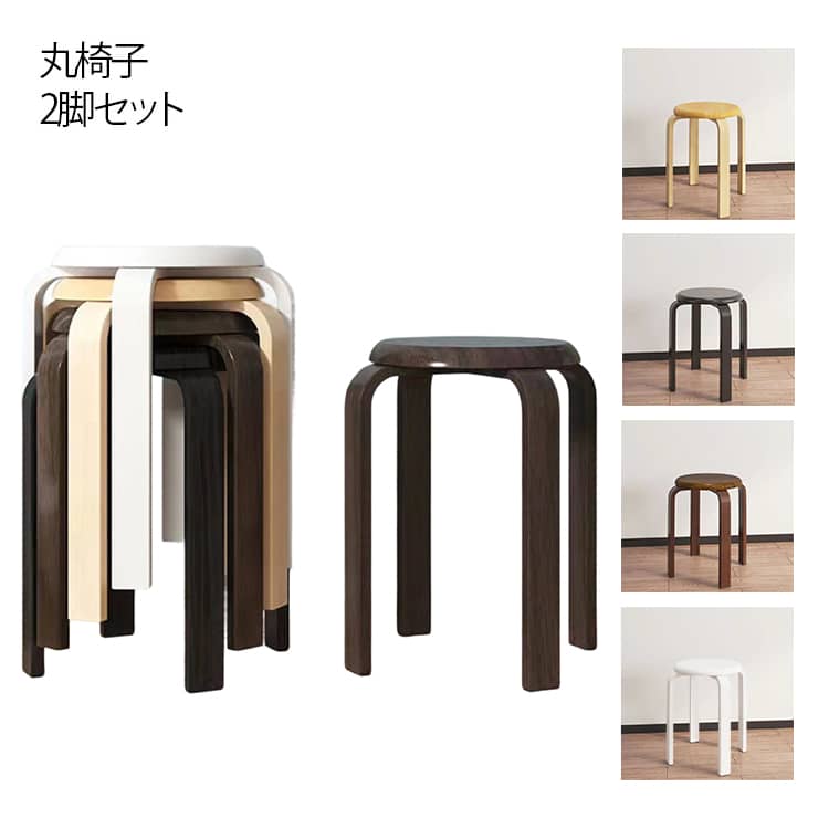 曲脚 丸椅子 丸イス 椅子 直径30cm イス 2脚セット 曲脚イス 曲げ脚 スツール 円形 いす 木製 丸いす スタッキングチェアー 背なし椅子 重ね 背なし