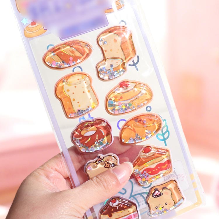 水入りシール 和風 6枚入り 女の子 和食 寿司 食べ物 パン ぷっくりシール ウォーターインシール おやつ ウォーターシール シール帳 シャカシャカシール 3D デコシール ぷくぷくシール 立 立体