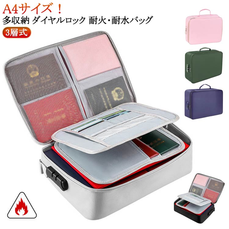 A4サイズ!多収納 ダイヤルロック 耐火・耐水バッグ