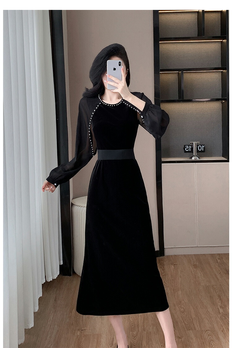 ベロア パーティードレス シア― ボリ レディースファッション 続々登場 S M L XL 2XL