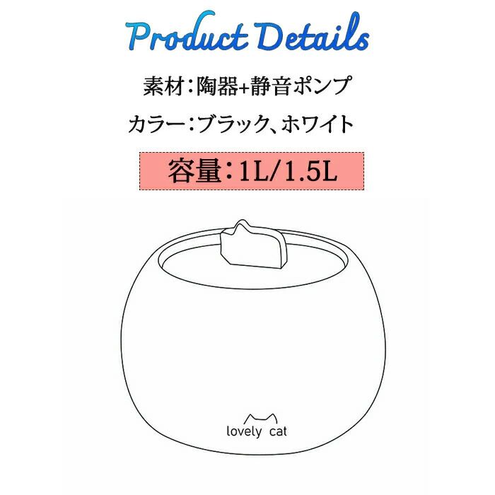 自動 水入れ 水分補給 陶器皿 ねこ給水器 水飲み機 水飲み 水飲み器 猫 自動給水器ペット ペット用食器 給水器 給餌器 ペットグッズ