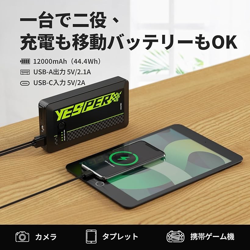 「バッテリー保護&PSE認証」YESPER小型ジャンプスターターは、310gという軽量ながら、世界トップクラスの性能と安全性を実現しています。
