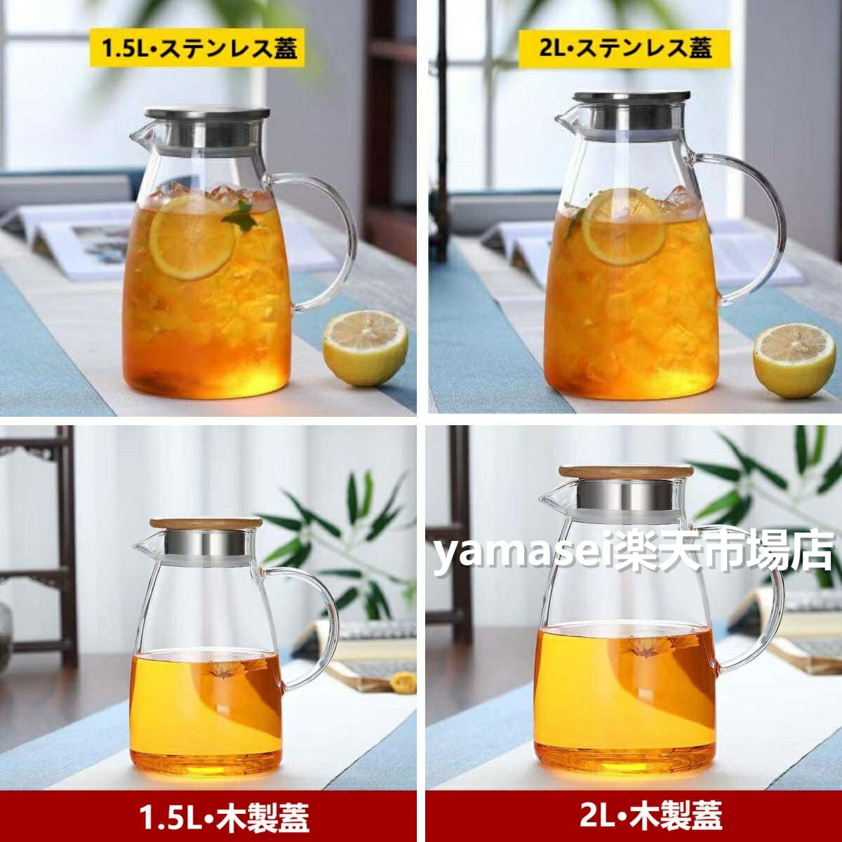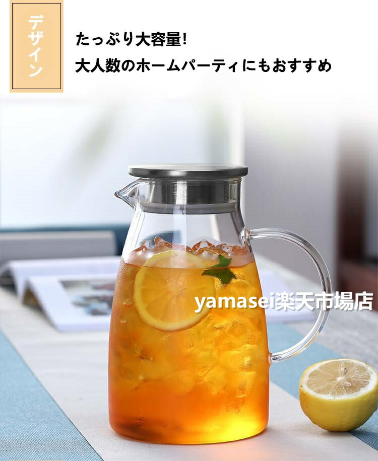 ティーポット 耐熱ガラス 麦茶ポット コーヒー お茶用品 ピッチャー 冷水筒 豊富 1.5Lステンレス蓋 2Lステンレス蓋 1.5L木製蓋 2L木製蓋