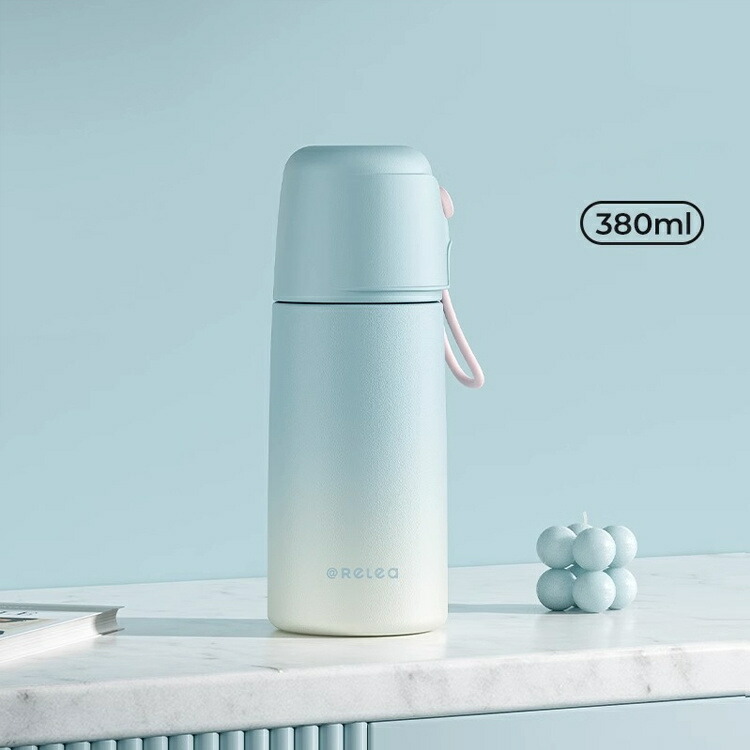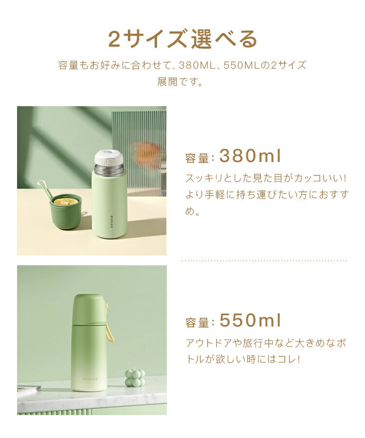 水筒 おしゃれ コップ付き ステンレス キッチン用品 食器 調理器具 人気 グリーン パープル ホワイト ピンク グリーン(グラデーション) パープル(グラデーション) ブルー(グラデーション) ピンク(グラデーション) 380ml 550ml