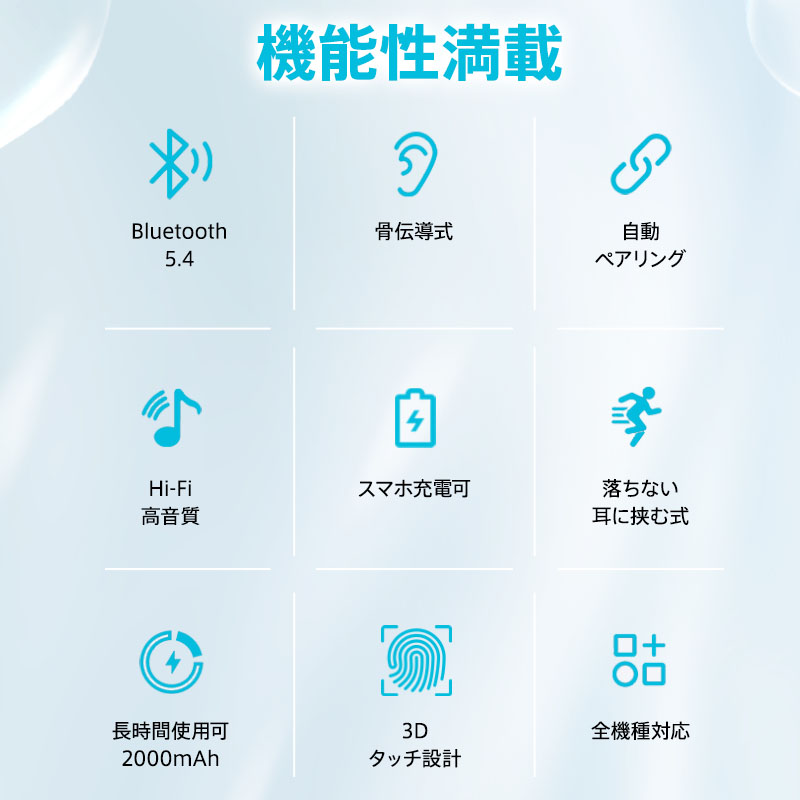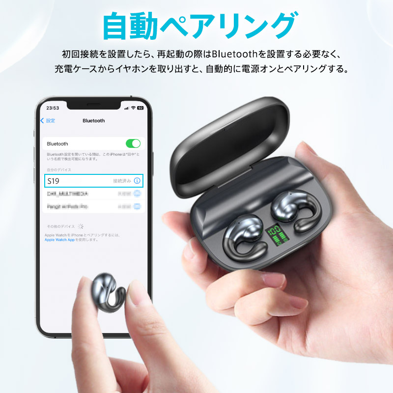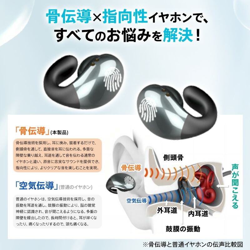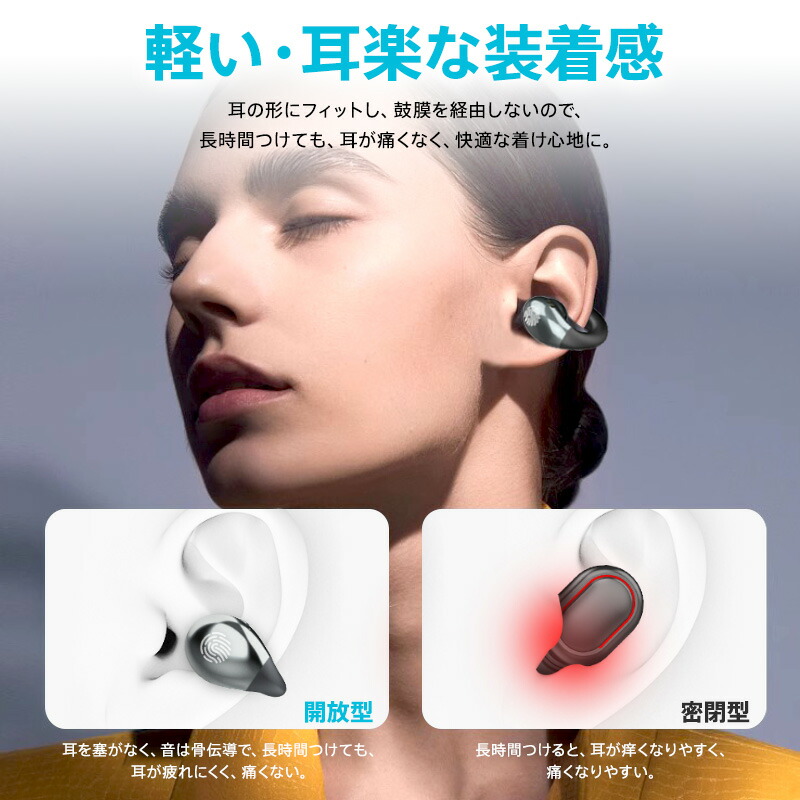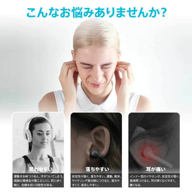 ワイヤレスイヤホン 骨伝導 Bluet ホワイト ブラック ベージュ レッド パープル