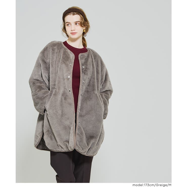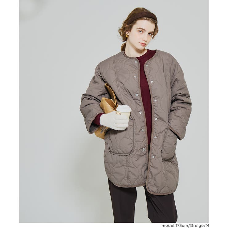 coca リバーシブルファーキルティン コート ジャケット 早い者勝ち!ポイントUP [S] [M] [L] [Lt.beige] [Greige] [Black]