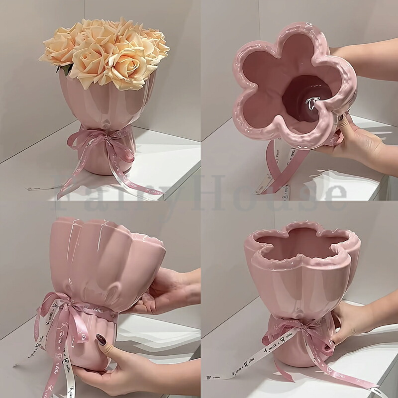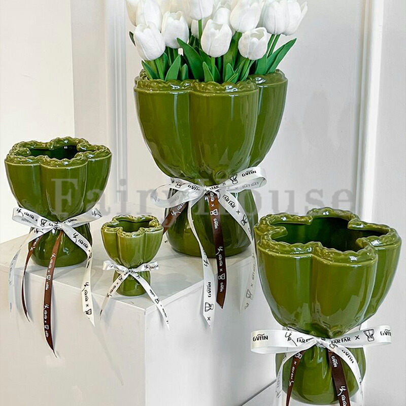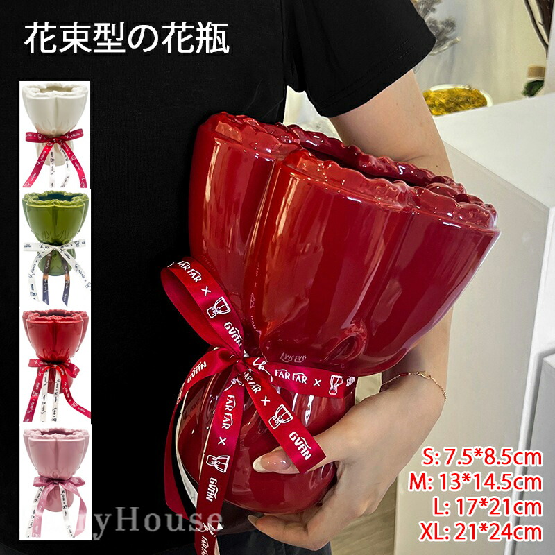 一輪挿し 花瓶 かびん 花束型 フラワ S M L XL ピンク レッド グリーン ベージュ
