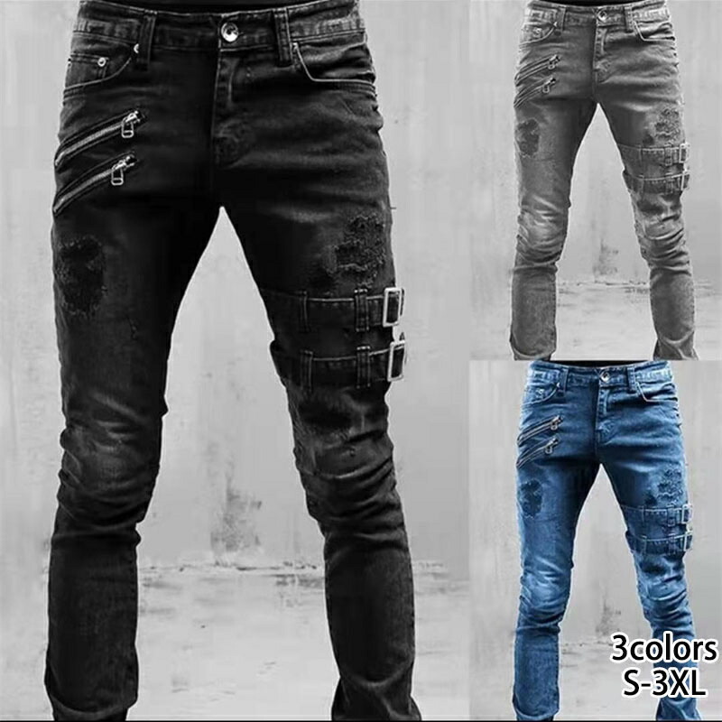 ダメージ スキニー ジーンズ メンズ メンズファッション 期間限定割引クーポン S M L XL 2XL 3XL ブルー ブラック グレー