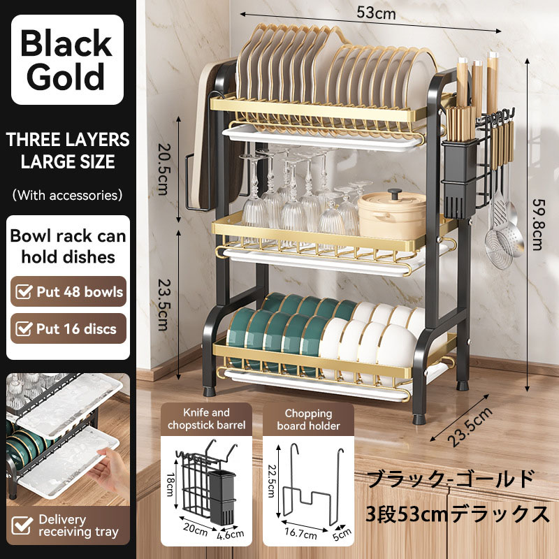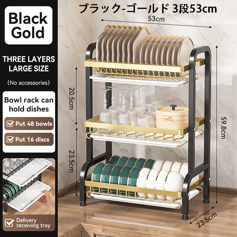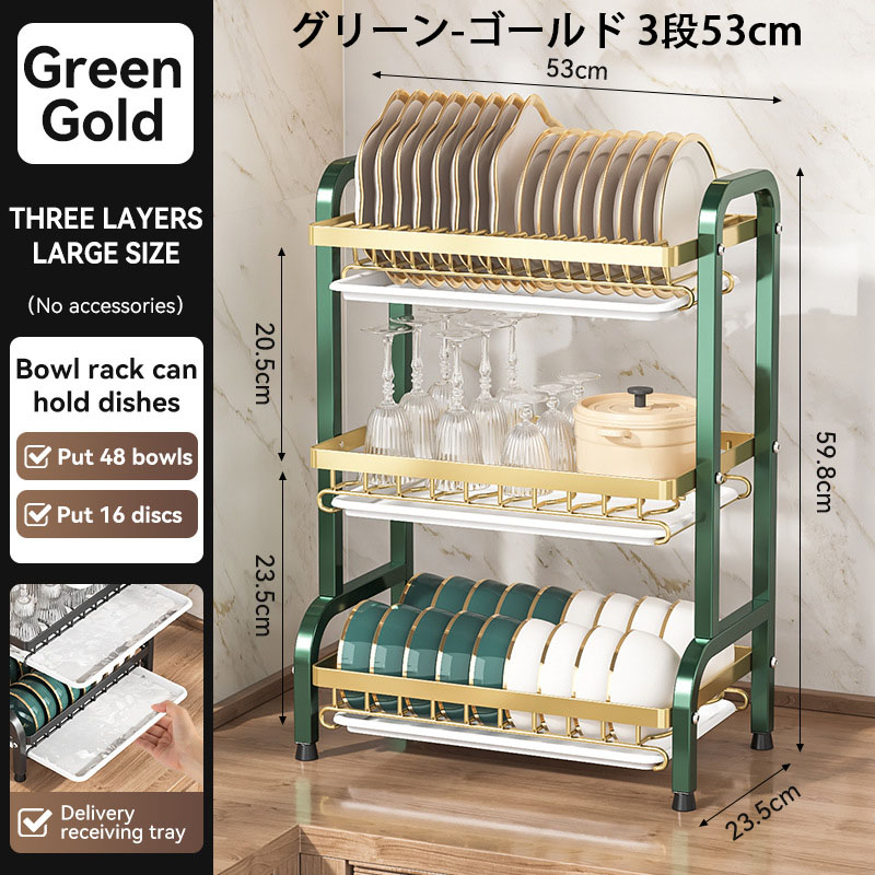 食器 水切りラック 2段 3段 食器乾 キッチン整理用品 水切りラック 47%Off ブラック ブラック-ゴールド グリーン-ゴールド 2段53cm 2段53cmデラックス 3段53cm 3段53cmデラックス