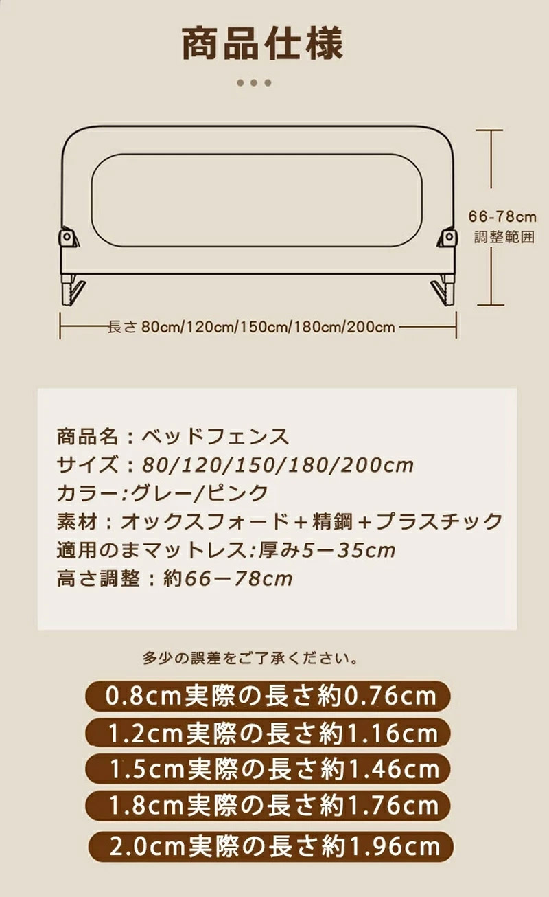 ベッドフェンス ベッドガード 転落防止 ベビー 寝具 ベッド ベッドガード サイドガード 期間限定ポイントUP! 80cm 120cm 150cm 180cm 200cm グレー無地 グレー ピンク ベージュ ブルー ワニちゃん