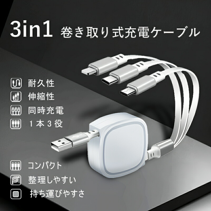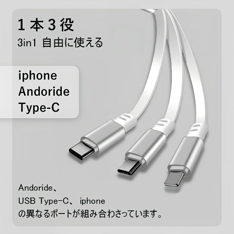 iPhoneケーブル Type-Cケーブル iPhone15ケーブル USB Type-C Micro USBケーブル 3in1充電ケーブル ストラップ式 急速充電ケーブル ナイロンケーブル 超小型