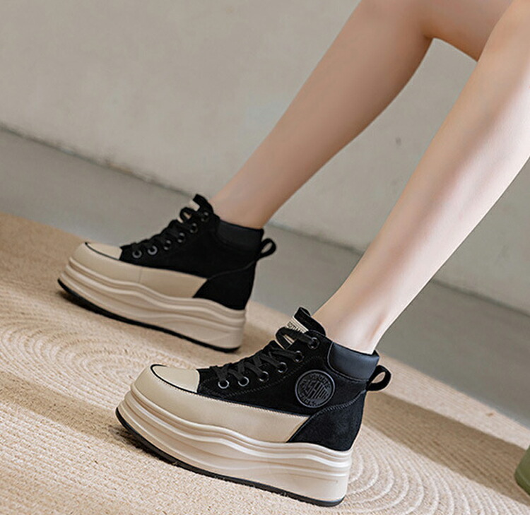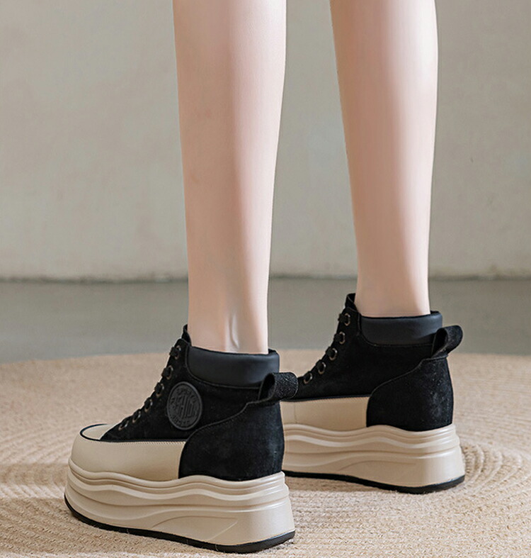 厚底 スニーカー 10cm レディース 8cmヒール スポーツシューズ ウォーキング ランニング 運動靴 カジュアルシューズ オフィス 通勤 通学 婦人靴 美脚 歩きやすい 疲れない おしゃれ レースアップ 黒 ハイカット 軽量 ヒールアップ 22-24.5CM