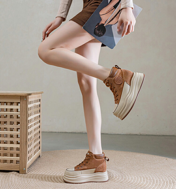 厚底ソールとインヒールを合わせることで、スニーカーなのに合計8/10cmのヒールアップを実現!膝下のラインを物理的に長く見せることで、履いた瞬間に全身のバランスが整い、モデル級のスタイルへ導きます。こっそり身長を盛りたい方に最適です。