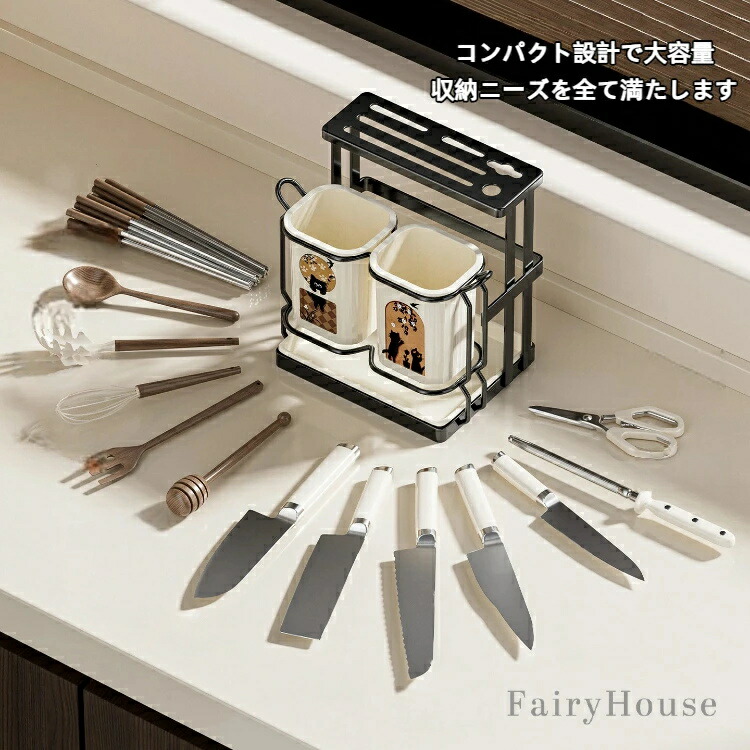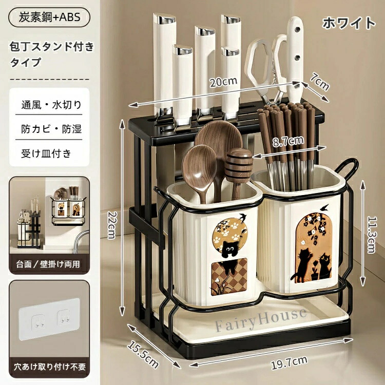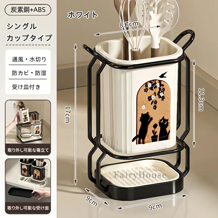 キッチン 包丁立て 厚手素材 卓上水切 食器 カトラリー グラス 箸 カトラリー 箸置き 続々登場 ホワイト ブラック 包丁スタンド付きタイプ シングルカップタイプ ダブルカップタイプ
