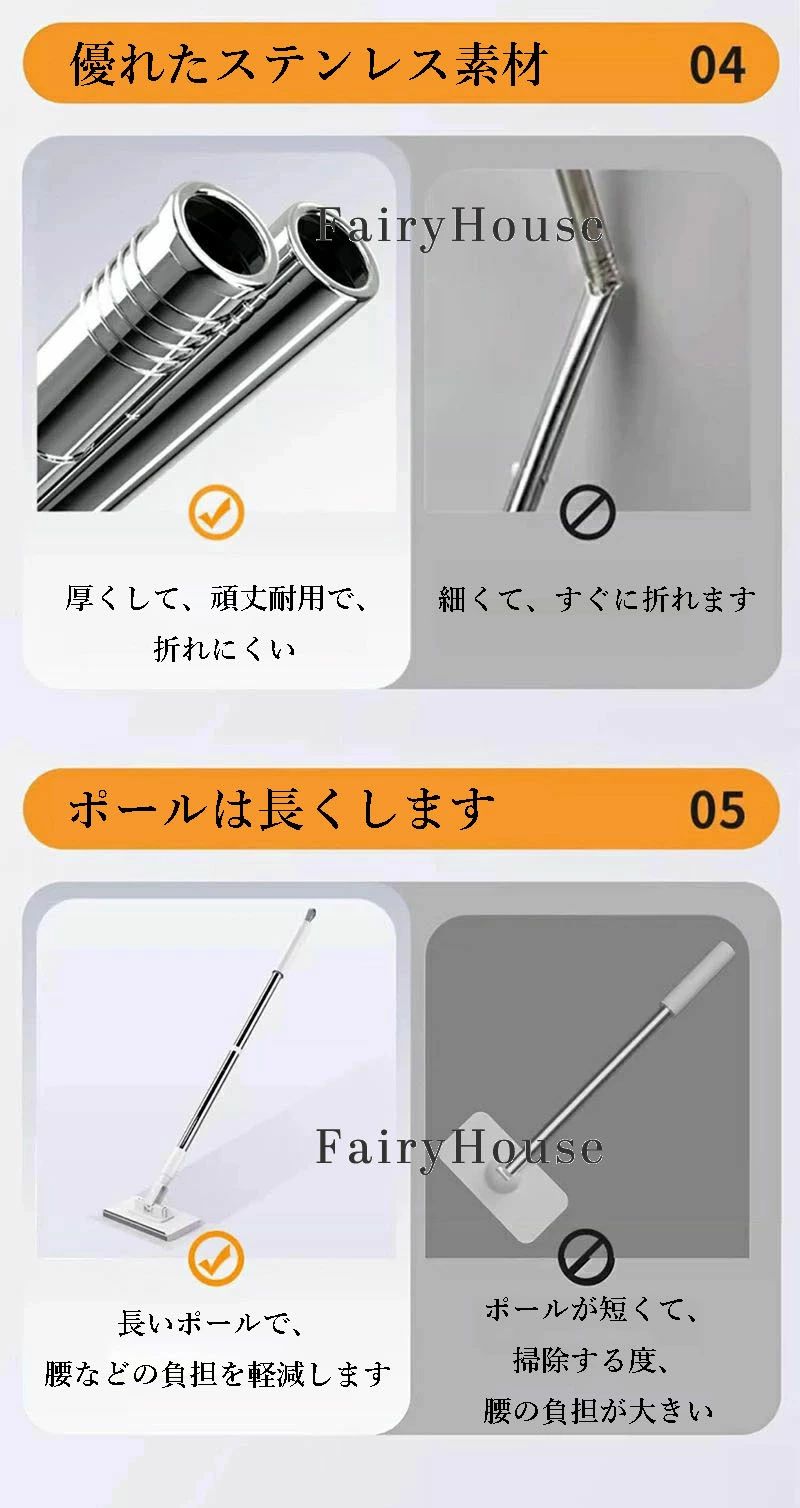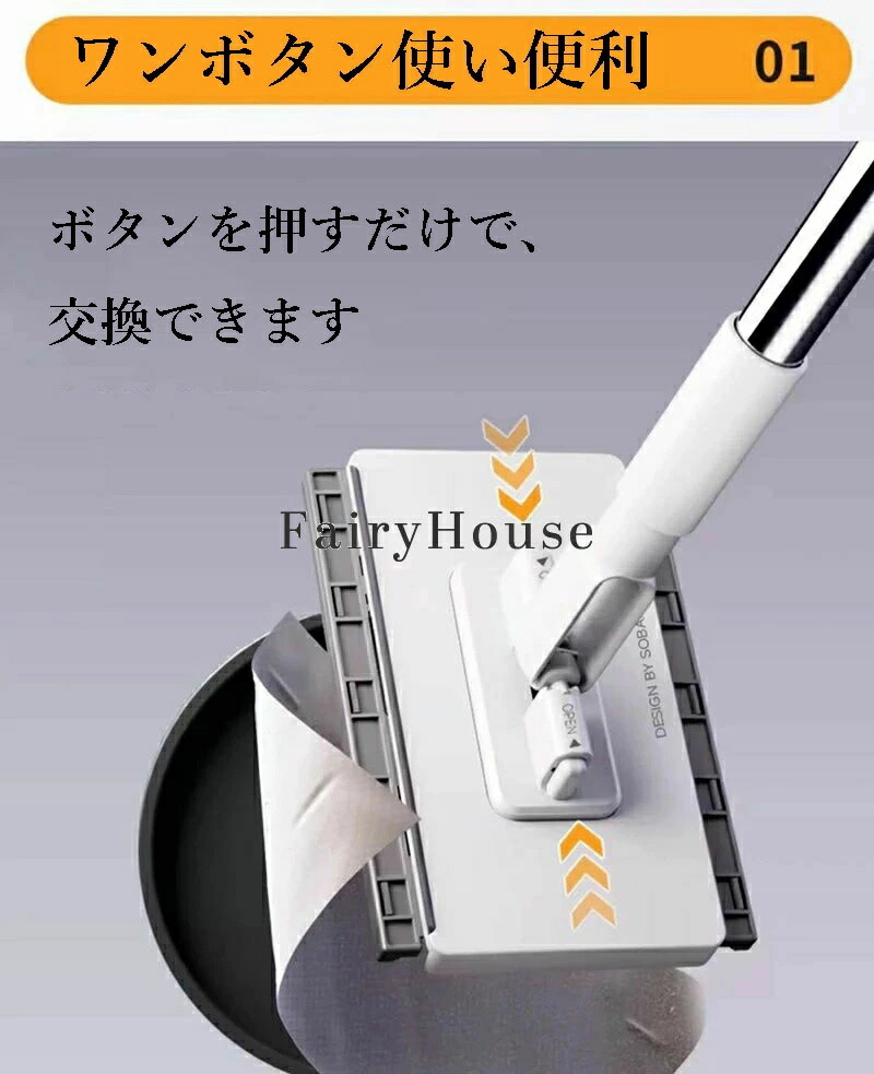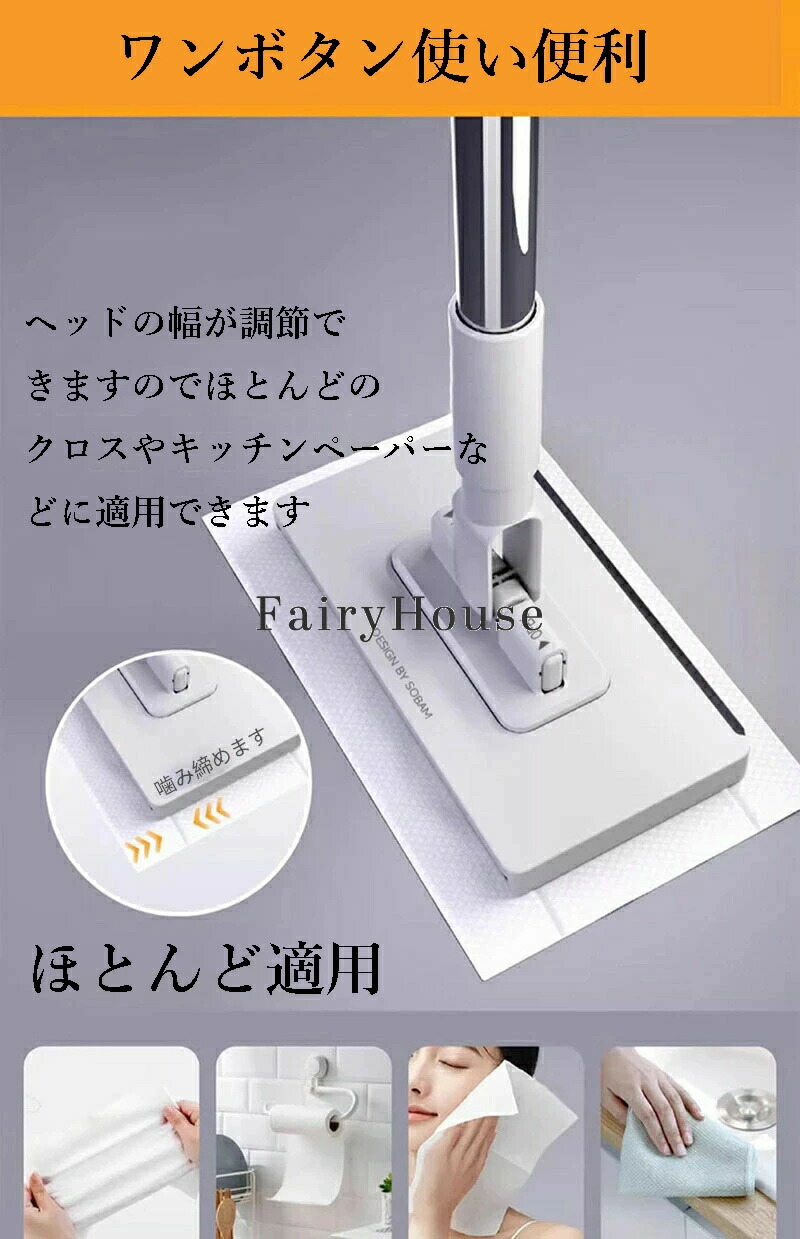 フェイスタオル対応 床掃除モップ 片手 日用品雑貨 文房具 手芸 人気 ホワイト【74cm】 ホワイト【95cm】