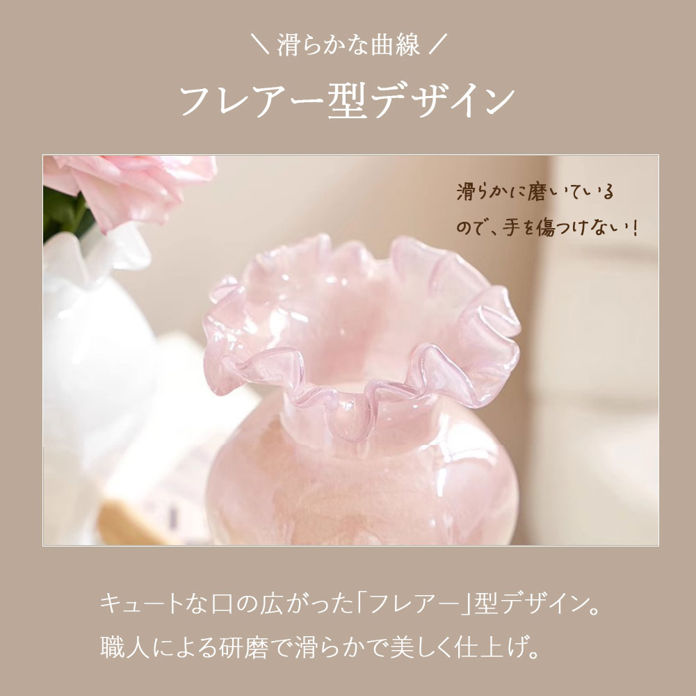 特徴的でかわいらしい口部分「フレアー」型はお部屋の雰囲気を明るくかわいらしく演出いたします。滑らかに丁寧に研磨していますので、美しく、もちろん手を傷つけません。