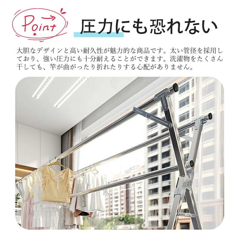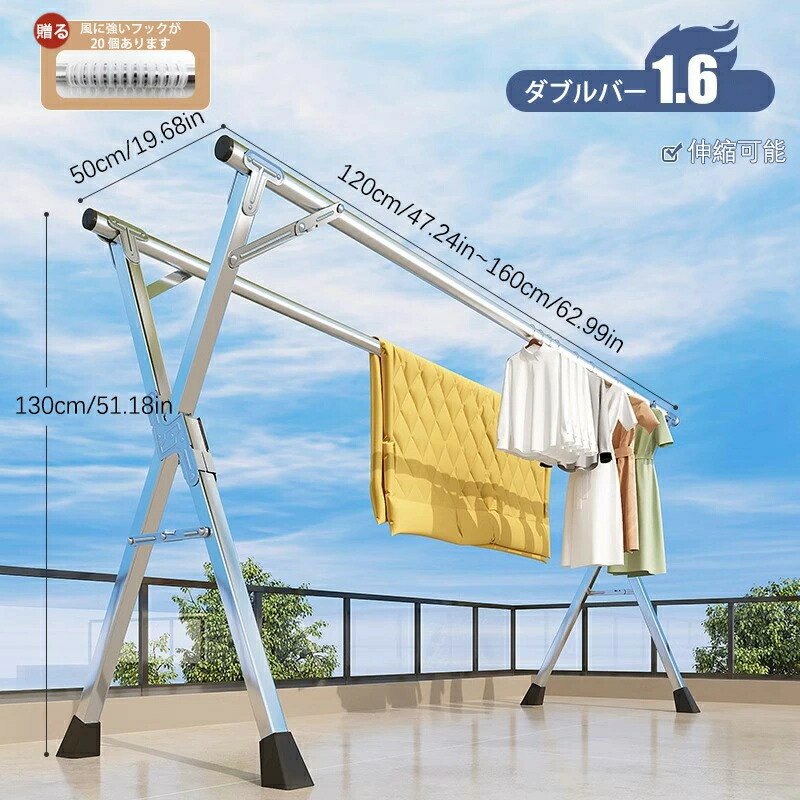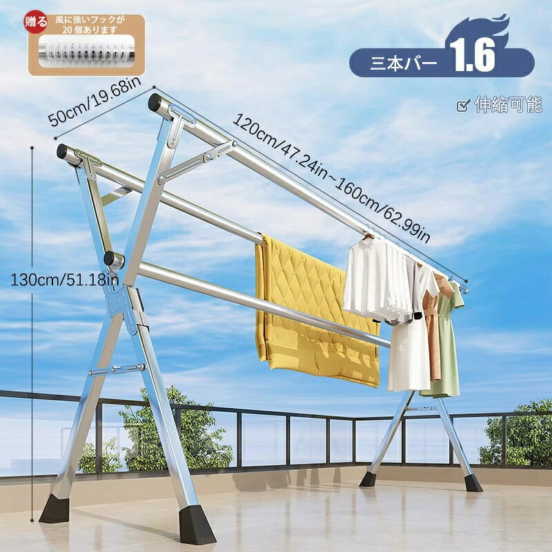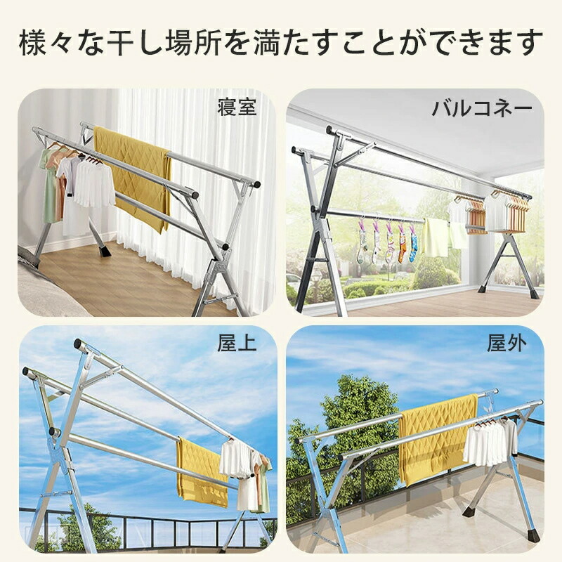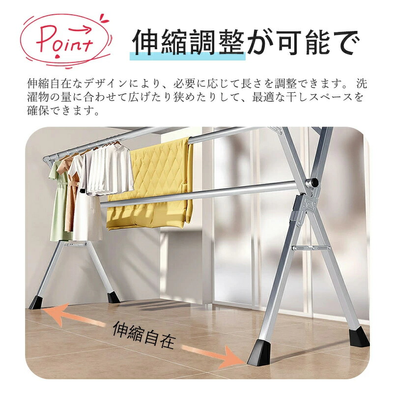 物干し ステンレス製 伸縮式多機能布団 洗濯用品 物干しスタンド 期間限定割引クーポン ダブルバー 三本バー