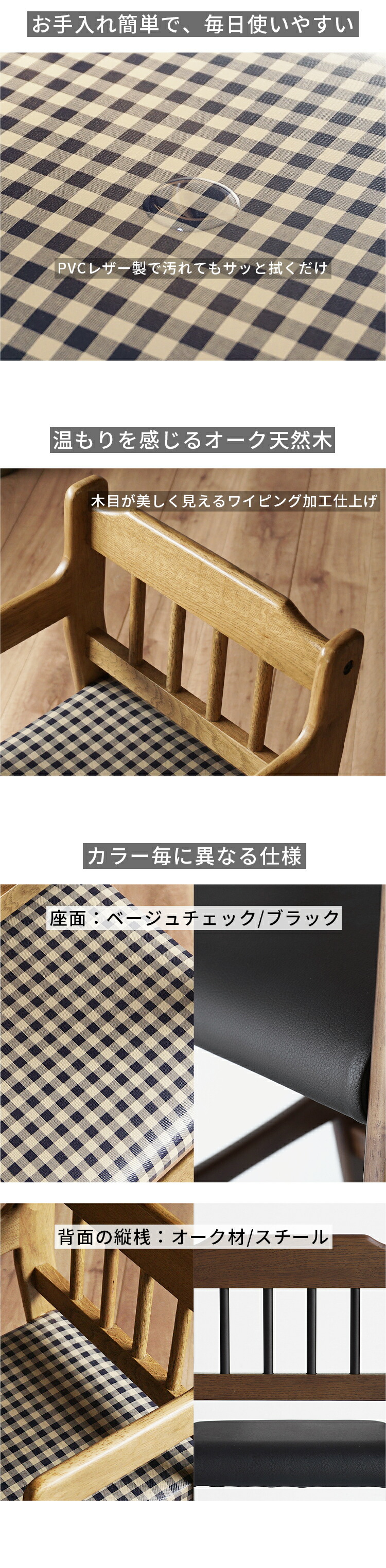 ・背もたれ:オーク天然木、スチール(ブラウンのみ)