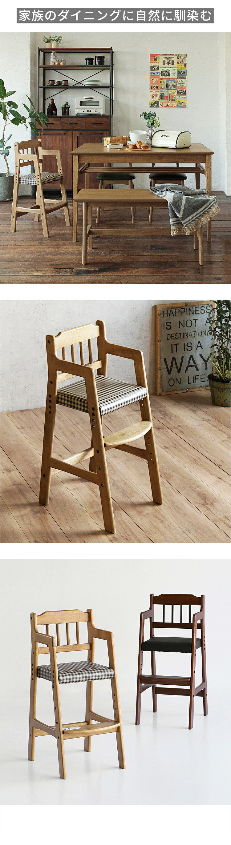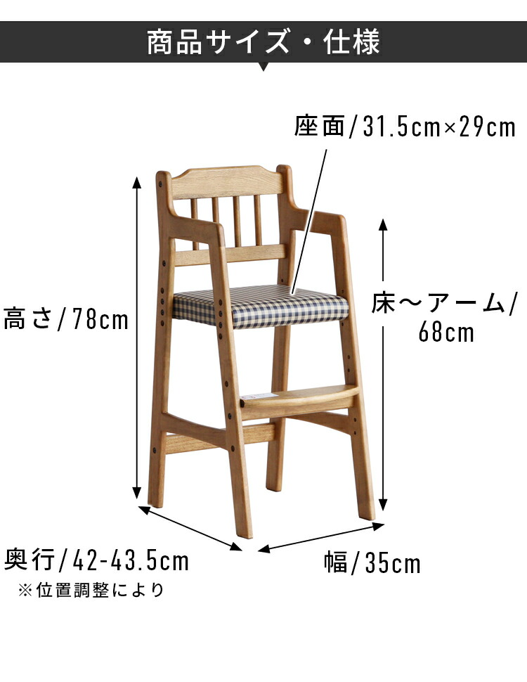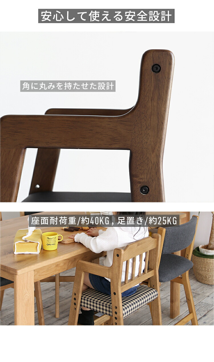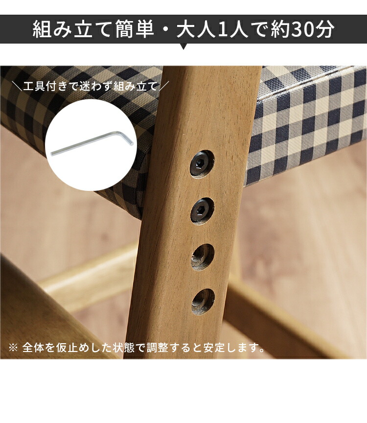 安心保証 キッズチェア 子供椅子 ハイチェア 木製 ダイニングチェア 高さ調整3段階 長く使える 天然木オーク 座面レザー&チェック柄 おしゃれ 北欧 モダン 学習椅子 リビング学習 食 ベビーチェア