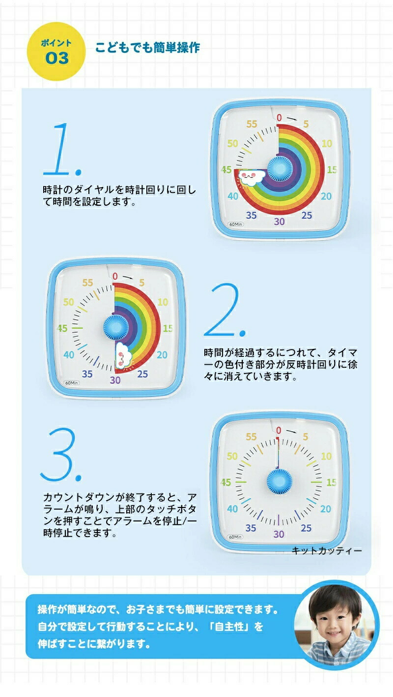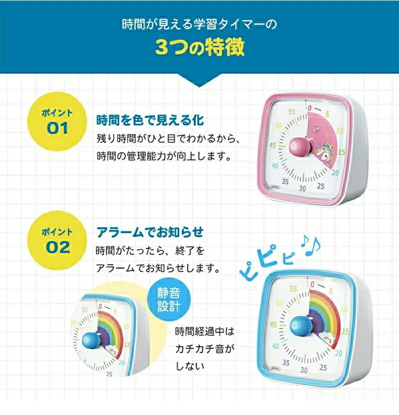 タイマー 子ども 時間管理 学習タイマ キッチン用品 食器 調理器具 続々登場 ホワイト ブルー ピンク グリーン
