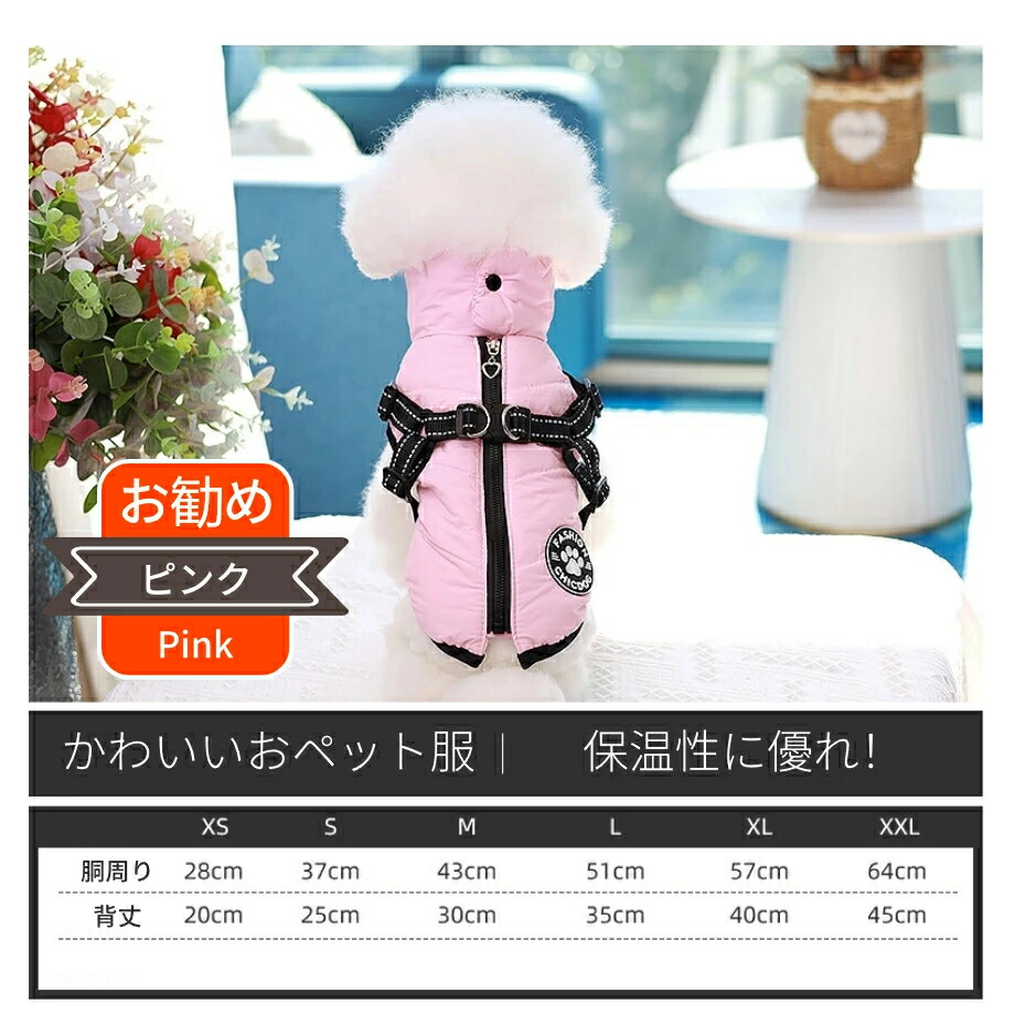 犬 服 ダウン風 ハーネス ジャケット ペット ペットグッズ 続々登場 XS S M L XL XXL ピンク グリーン レッド ブラック