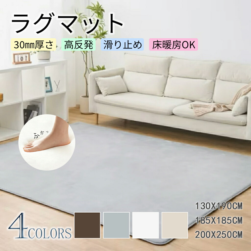 ラグマット 厚手 極厚 30mm 高反 グレー ベージュ ホワイト ブラウン 130x190cm 185x185cm 200x250cm