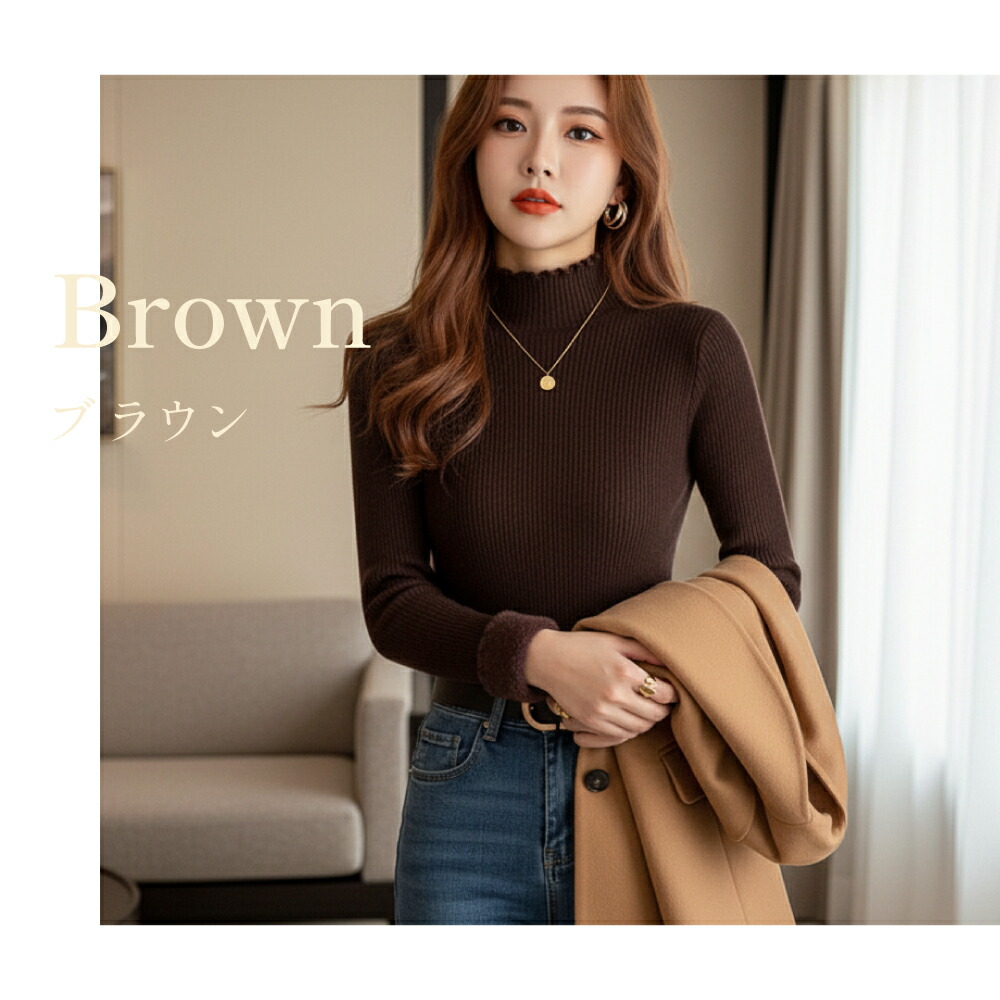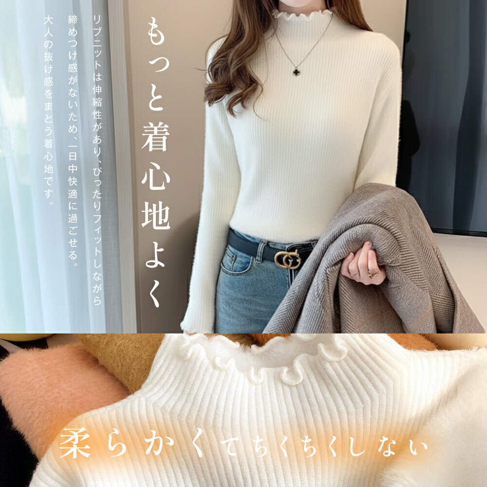 ニット 長袖 シンプル きれいめ ハイ レディースファッション 人気 ホワイト アイボリー ベージュ ブラウン ブルーグレー ブラック