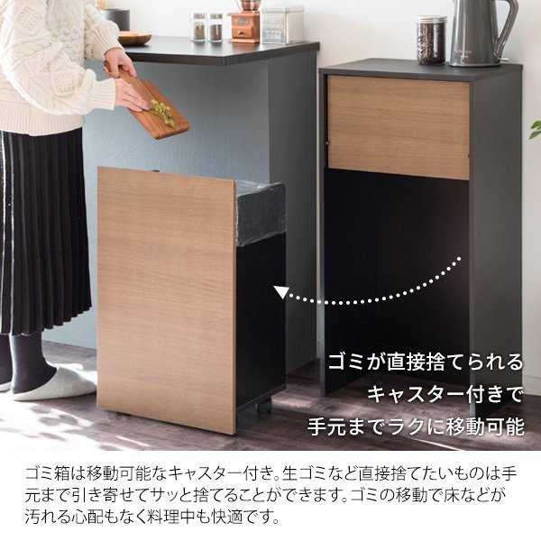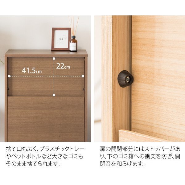 ゴミ箱 45L キャスター付き 木製 ブラウン ナチュラル ブラウン×ブラック ホワイト